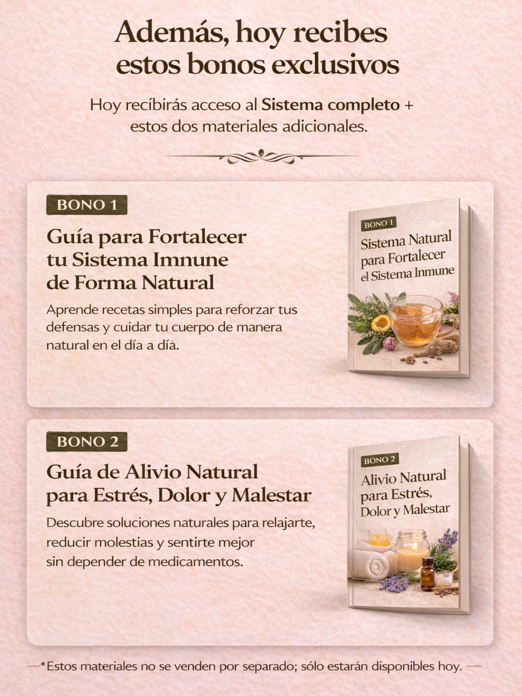 Además incluye dos materiales adicionales enfocados en fortalecer el sistema inmune y acompañar procesos oncológicos desde un enfoque natural.